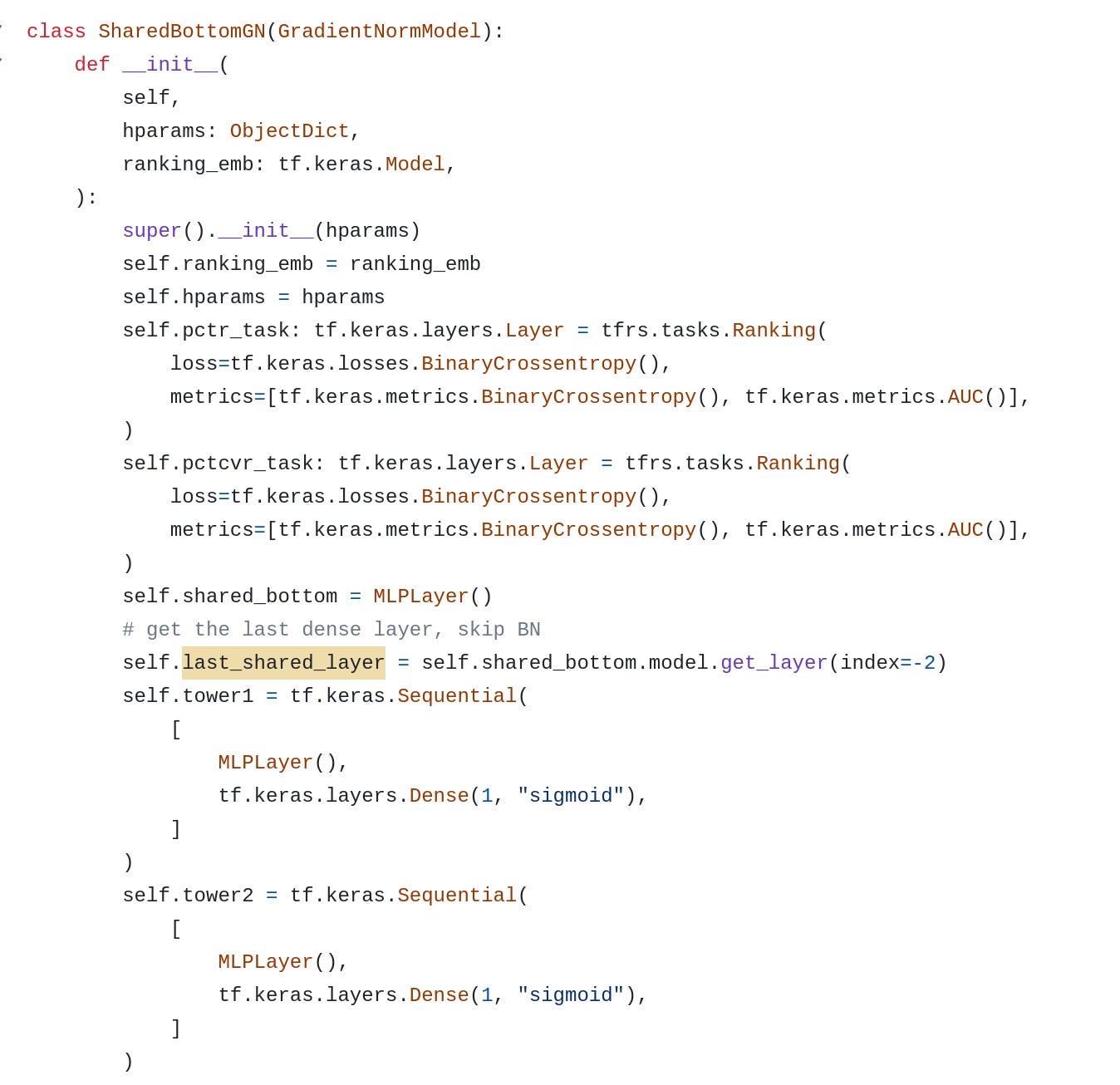 In the training model, here I use a shared bottom model. Remeber to record the last shared layer. Then every thing is ready, just train it.